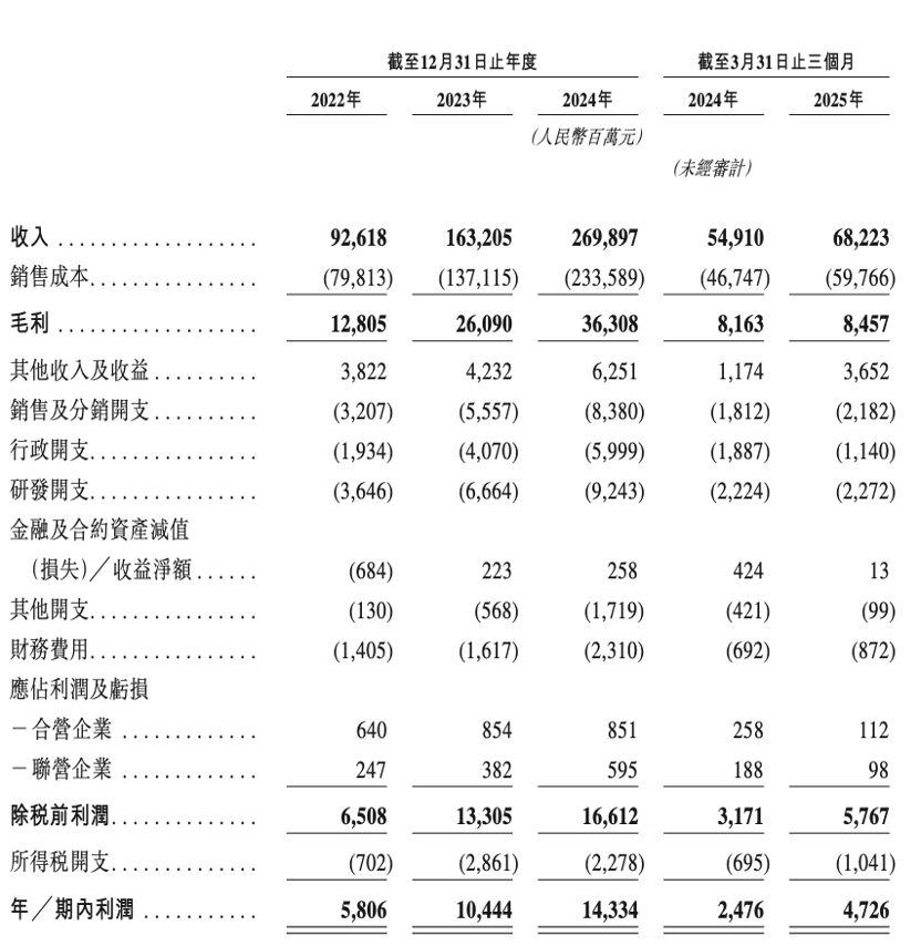 最新招股书显示,2025年第一季度,奇瑞汽车实现收入682.2亿元,同比增幅约24.25%;期内利润47.26亿元,同比增长90.87%。