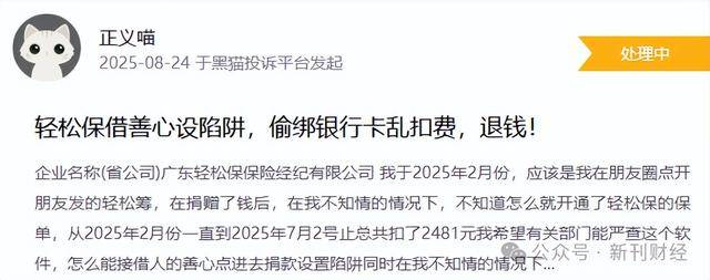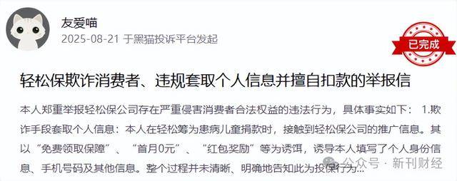 值得关注的是,截至2025年8月28日,在黑猫投诉平台上,针对轻松保的投诉累计高达1778条。投诉内容主要聚焦于未经客户同意擅自扣费、违规套取用户个人信息等行为。此外,部分用户反馈,在使用轻松筹平台为患病儿童进行捐款时,会收到轻松保的推广信息。这一现象似乎与前文提及的轻松健康集团可能通过轻松筹实现导流获客的运营策略形成相互印证。
