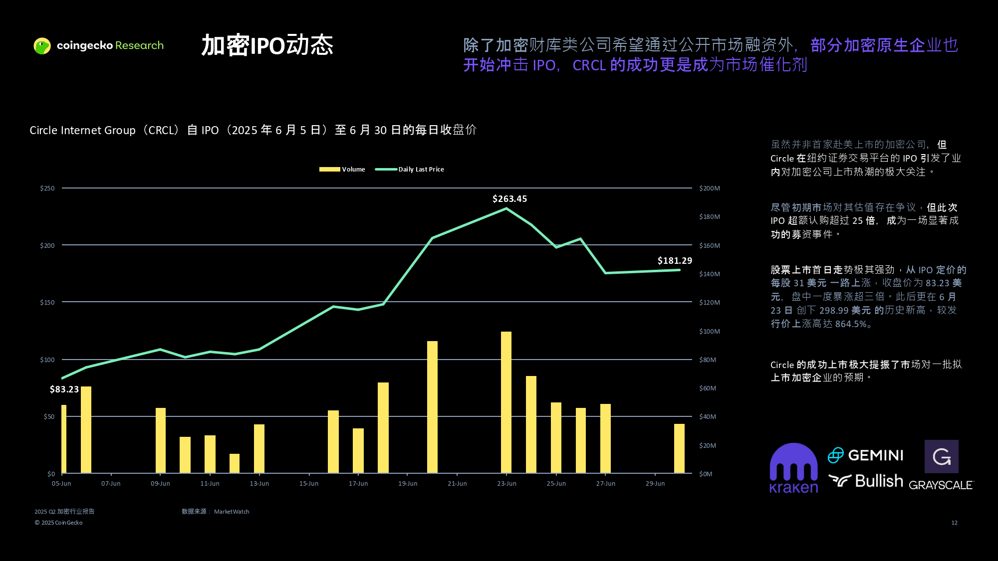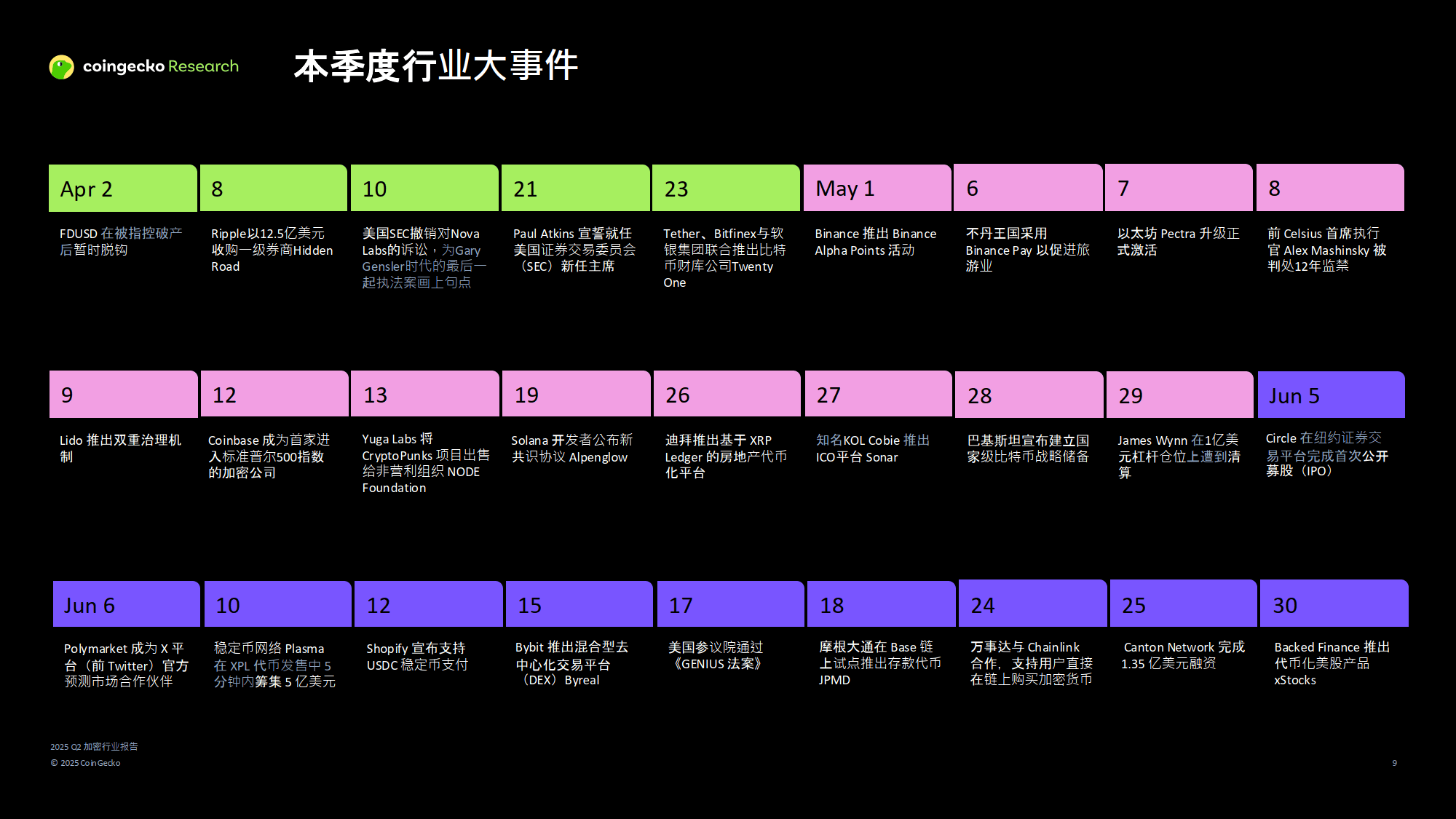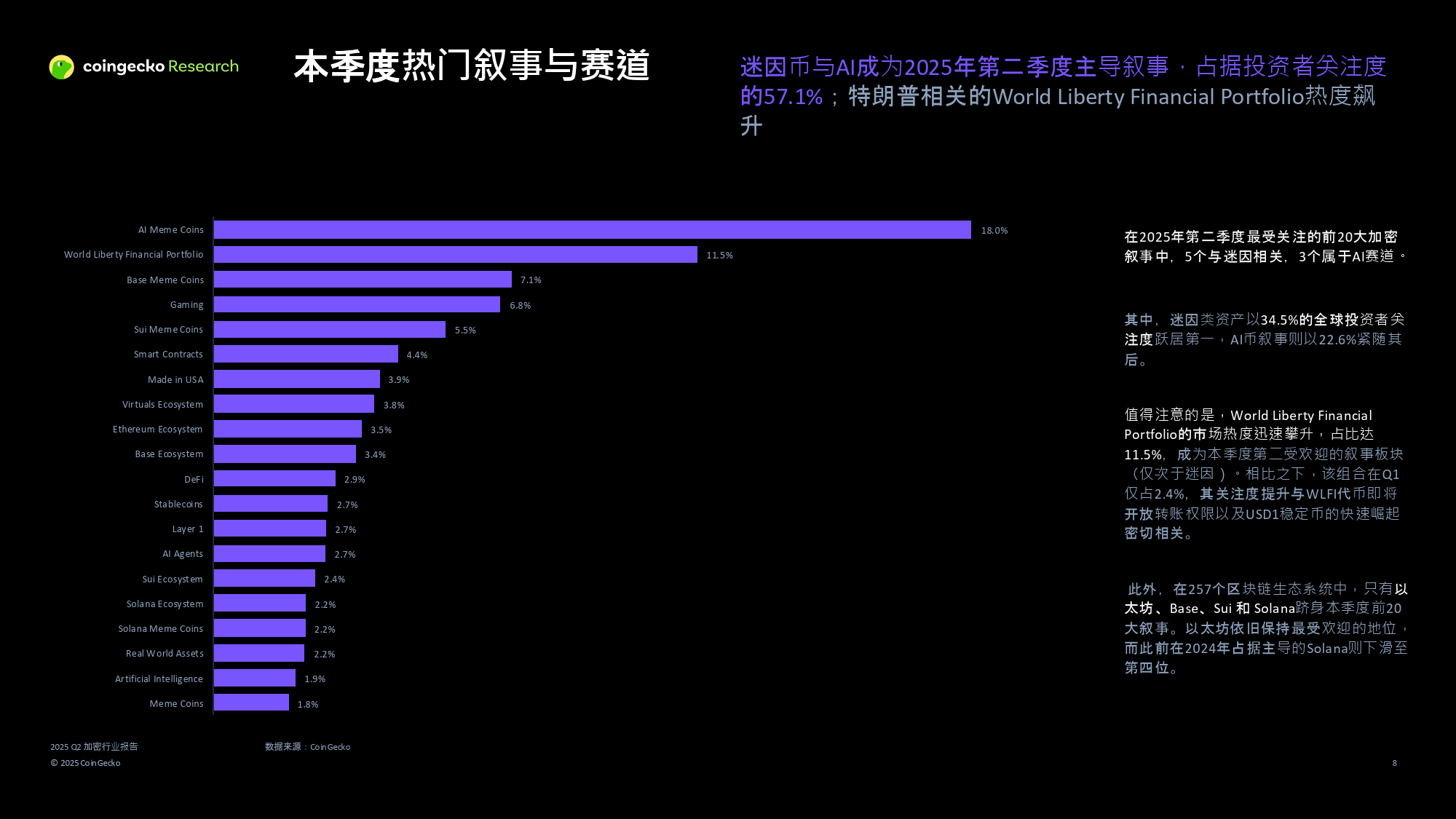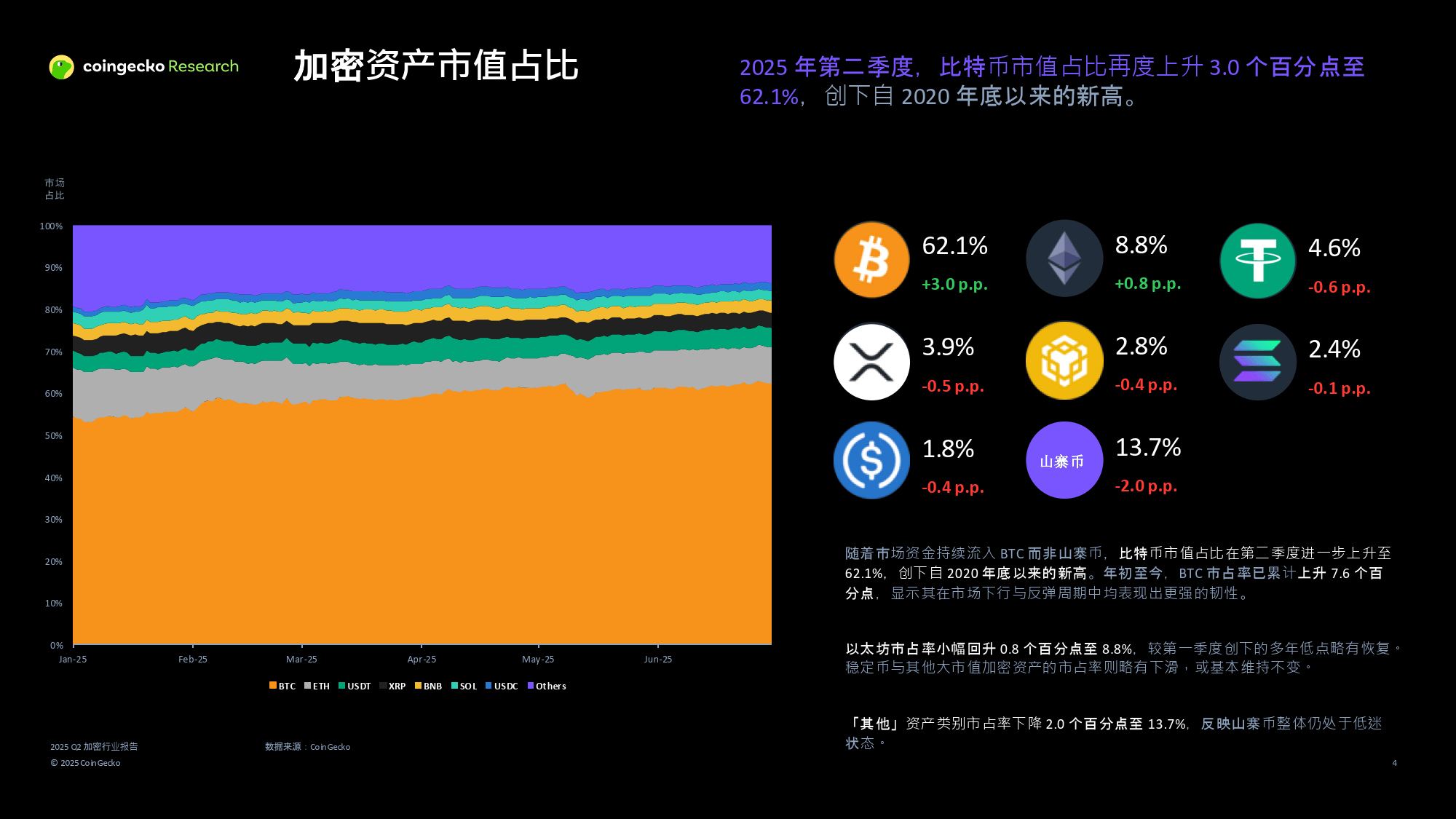 2025年Q2,CoinGecko发布加密货币行业报告,呈现市场多维度动态。整体市场回暖,总市值反弹24.0%至3.5万亿美元,扭转Q1跌幅,但现货日均交易量环比降26.2%至1078亿美元,连续两季萎缩。