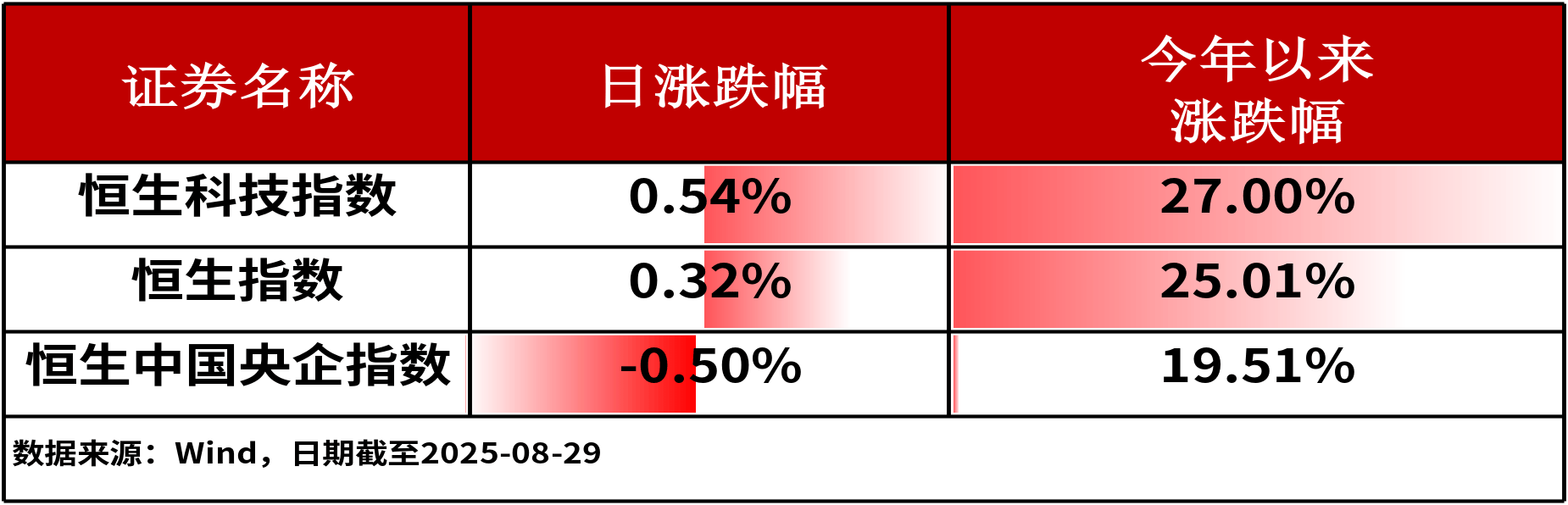 8月29日,港股主流指数涨跌不一。其中,恒生科技指数上涨0.54%,涨幅相对居前。
