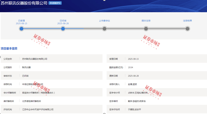 据上交所网站信息显示,近日,苏州联讯仪器股份有限公司(以下简称“联讯仪器”)IPO进入问询阶段。公司IPO受理时间为今年的8月15日。