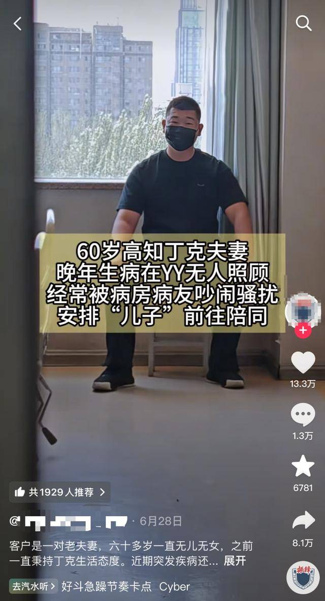 “我们当时假扮老人的儿子,一方面是为了震慑潜在骚扰者,毕竟我们很多保镖也是人高马大的。另一方面,是为了能让客户安心住院,为客户提供心理支持。”联系到视频中的保镖公司后,负责人段先生如此介绍道。