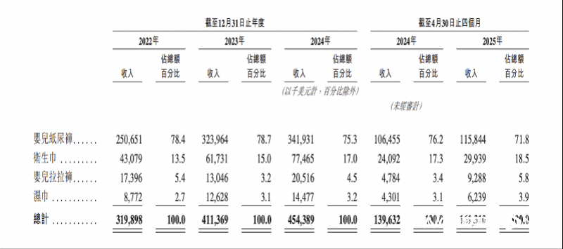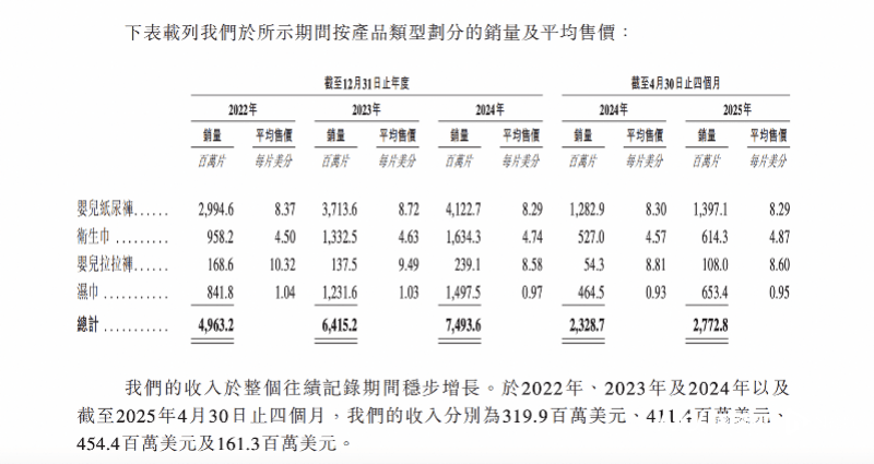 据招股书,2022 至2024 年,其婴儿纸尿裤销量一路攀升,2022 年为 29.95 亿片,2023 年跃至 37.14 亿片,到 2024 年达到 41 亿片 ,2022 至 2024 年复合年增长率达 17.3% 。三年卖出超108亿片纸尿裤,婴儿纸尿裤作为乐舒适的业务基本盘,占总营收超过75%。