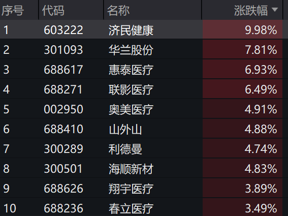 截至2025年9月1日 10:16,中证全指医疗器械指数(H30217)强势上涨1.46%,成分股济民健康(603222)上涨9.98%,华兰股份(301093)上涨7.81%,惠泰医疗(688617)上涨6.93%,联影医疗(688271),奥美医疗(002950)等个股跟涨。医疗器械ETF(159883)上涨1.08%。