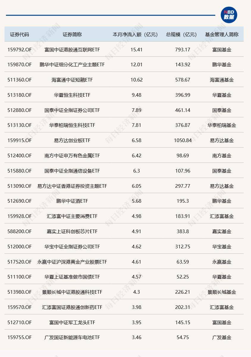 截至9月1日,本月资金净流入额居前20的ETF名单如下: