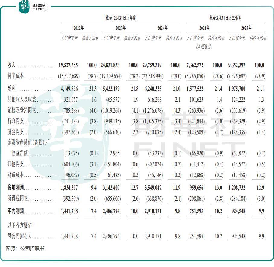 招股书显示,2022年-2024年,奥克斯电气分别实现收入195.28亿元(单位人民币,下同)、248.32亿元及297.59亿元,复合年增长率为23.4%;实现净利润14.42亿元、24.87亿元及29.10亿元,复合年增长率达42.1%。今年一季度,公司经营业绩继续保持较高增长。