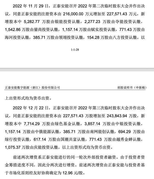 其中,2022年11月,银能投资认缴5,282.77万股,夺能投资认缴2,277.23万股,鋆尚投资认缴1,542.86万股,赋实投资认缴1,157.14万股,领翊投资认缴385.71万股;2022年12月,绿色基金认缴7,714.29万股,中银投资认缴3,857.14万股,中俄能源认缴1,157.14万股,南网能创认缴385.71万股,绿行投资认缴694.29万股,国潮共富认缴617.14万股,越秀金蝉认缴771.43万股,庆能投资认缴1,075.37万股。