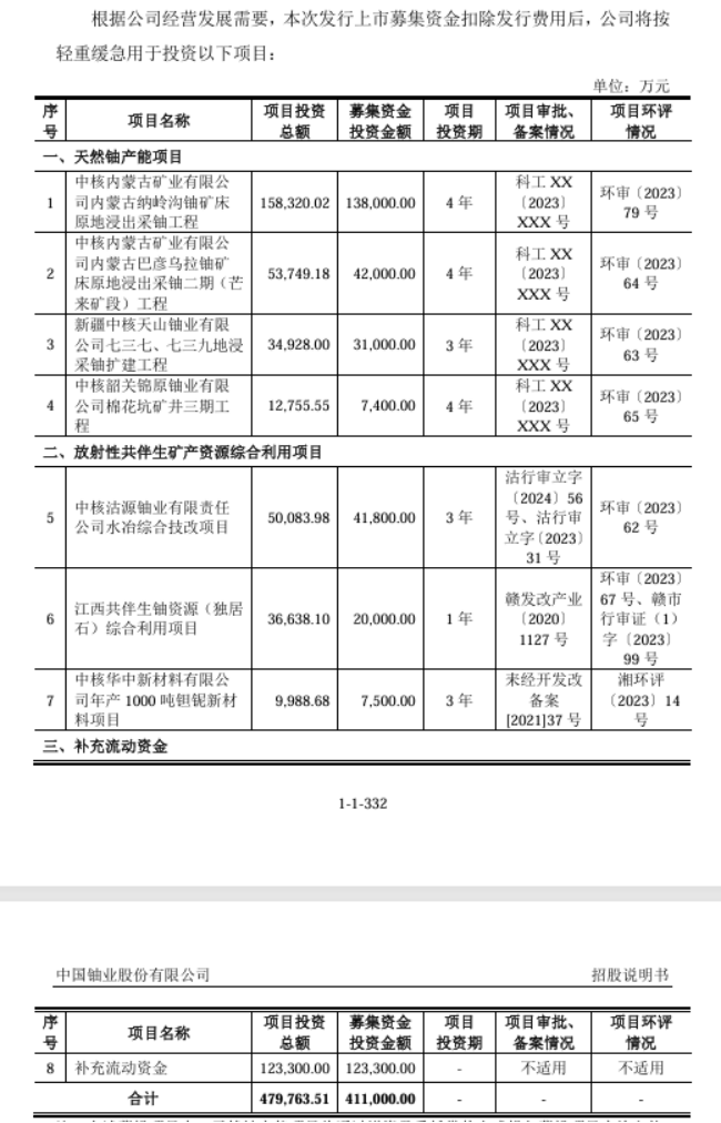 不过,尽管中国铀业的成功过会或许并无悬念,但该公司的募资补流项目还是把宝宝们吓坏了。本次IPO,该公司计划募集资金41.1亿元,主要用于四个天然铀产能项目、三个放射性共伴生矿产资源综合利用项目,以及补充流动资金。其中拟补充流动资金项目的金额为12.33亿元。这个额度比绝大多数IPO公司的拟募资金额还要多得多。毕竟绝大多数IPO公司的募资计划都只有几个亿,北交所IPO公司募资超过10亿的公司更是凤毛麟角。中国铀业IPO,仅补充流动资金开口就是12.33亿元,这确实要吓坏宝宝们了。