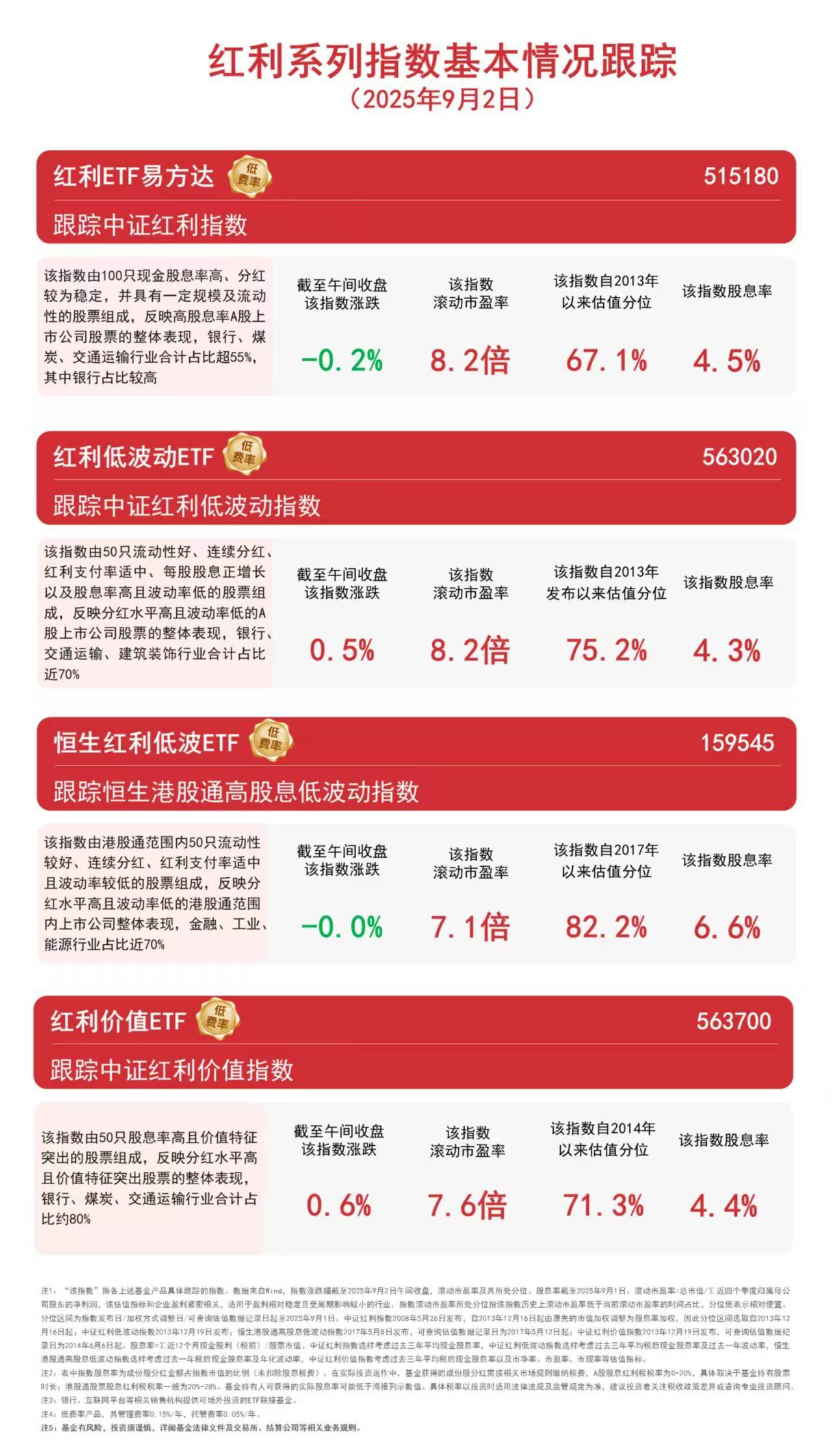 市场早盘调整,银行、电力板块逆势上行,截至午间收盘,中证红利价值指数上涨0.6%,中证红利低波动指数上涨0.5%,恒生港股通高股息低波动指数下跌0.02%,中证红利指数下跌0.2%。