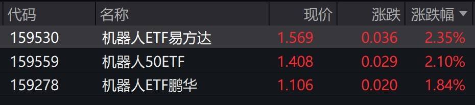 受盘面影响,跟踪国证机器人产业指数的ETF涨约2%。