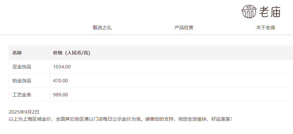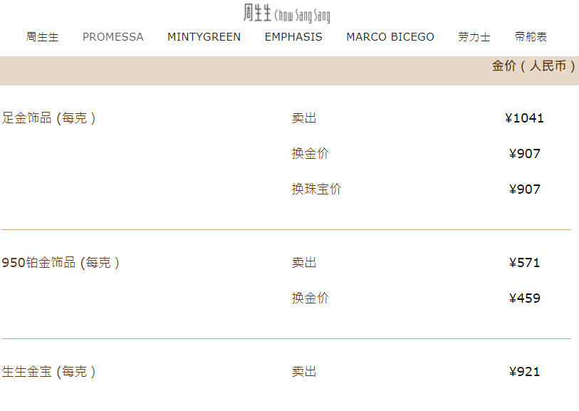 2日,记者查询发现,国内金饰价格也有较大幅度增长,周生生为1041元/克,较前日上涨16元,老庙黄金为1034元,单日上涨11元。