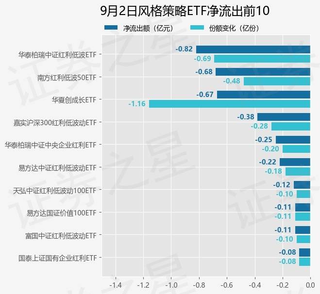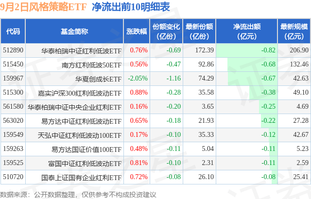 当日有28只风格策略ETF基金出现资金净流出,其中净流出排首位的是华泰柏瑞中证红利低波ETF(512890),份额减少了6900.0万份,净流出额为8246.63万元。