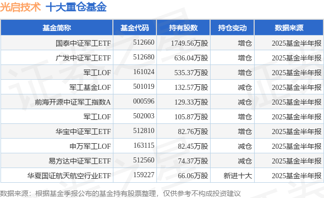 重仓光启技术的前十大公募基金请见下表: