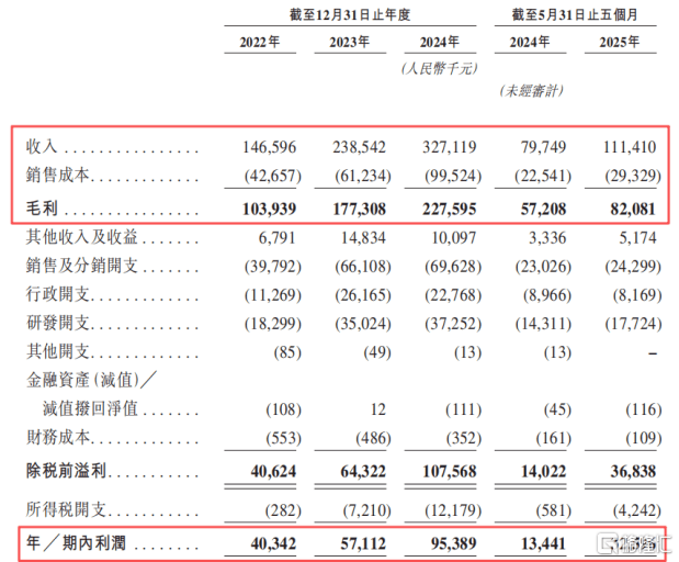 财务数据方面,近几年公司的收入和利润有所增长。2022年、2023年、2024年、2025年1-5月(报告期),公司的收入分别为1.47亿元、2.39亿元、3.27亿元、1.11亿元,净利润分别为4030万元、5710万元、9540万元、3260万元。