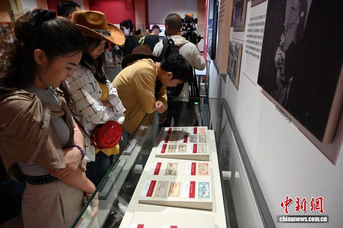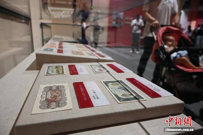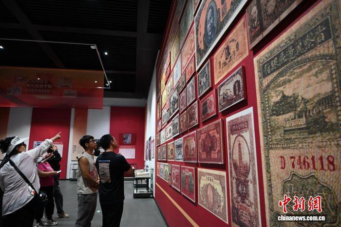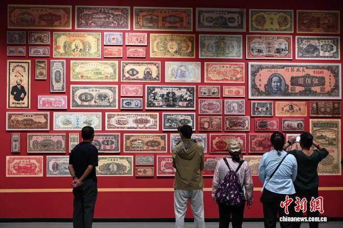 9月3日,内蒙古呼和浩特市,游客欣赏1927年至1949年中国共产党领导的革命政权发行的货币扫描打印件。中新社记者 刘文华 摄