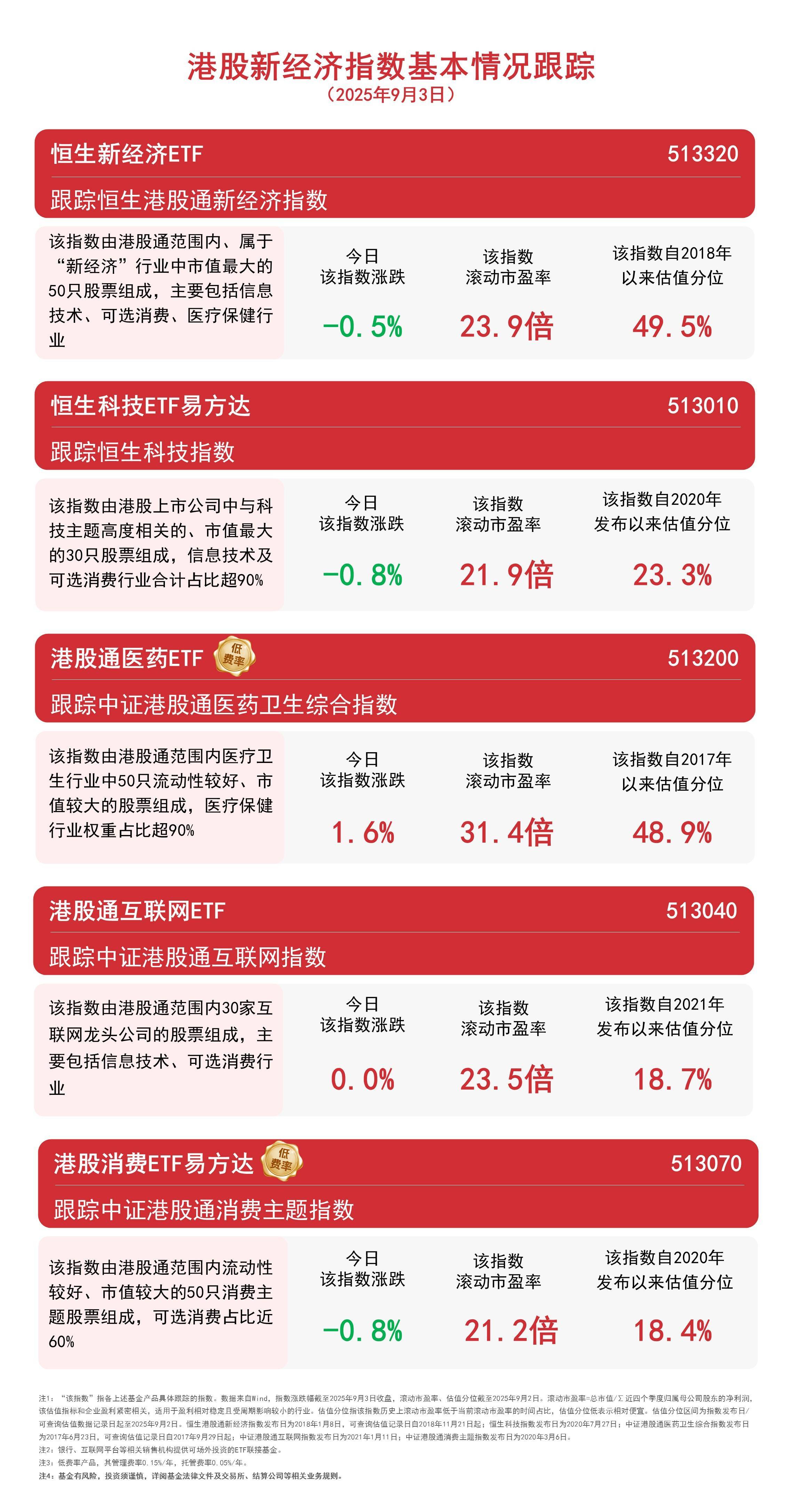 今日港股整体高开低走,医药股逆势上涨,截至收盘,中证港股通医药卫生综合指数上涨1.6%,中证港股通互联网指数上涨0.02%,恒生港股通新经济指数下跌0.5%,恒生科技指数下跌0.8%,中证港股通消费主题指数下跌0.8%,恒生科技ETF易方达(513010)全天成交额近15亿元。