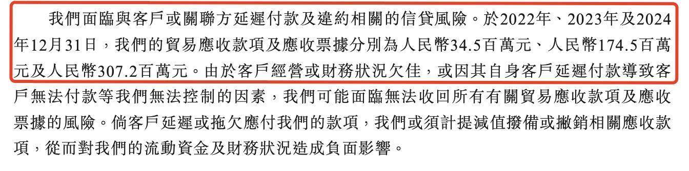 值得注意的是,2022年-2024年,公司贸易应收款项及应收票据3450万元、1.75亿元、3.07亿元,占收入的比例分别达44%、72.31%、77.72%。