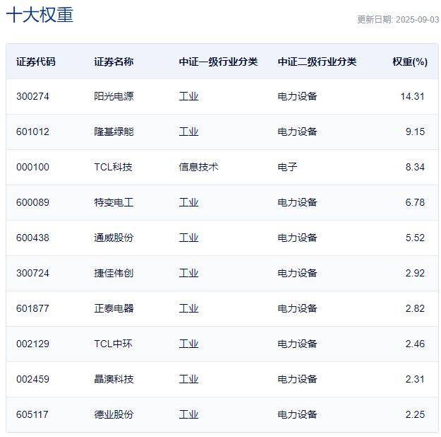 中证光伏产业指数主要权重股