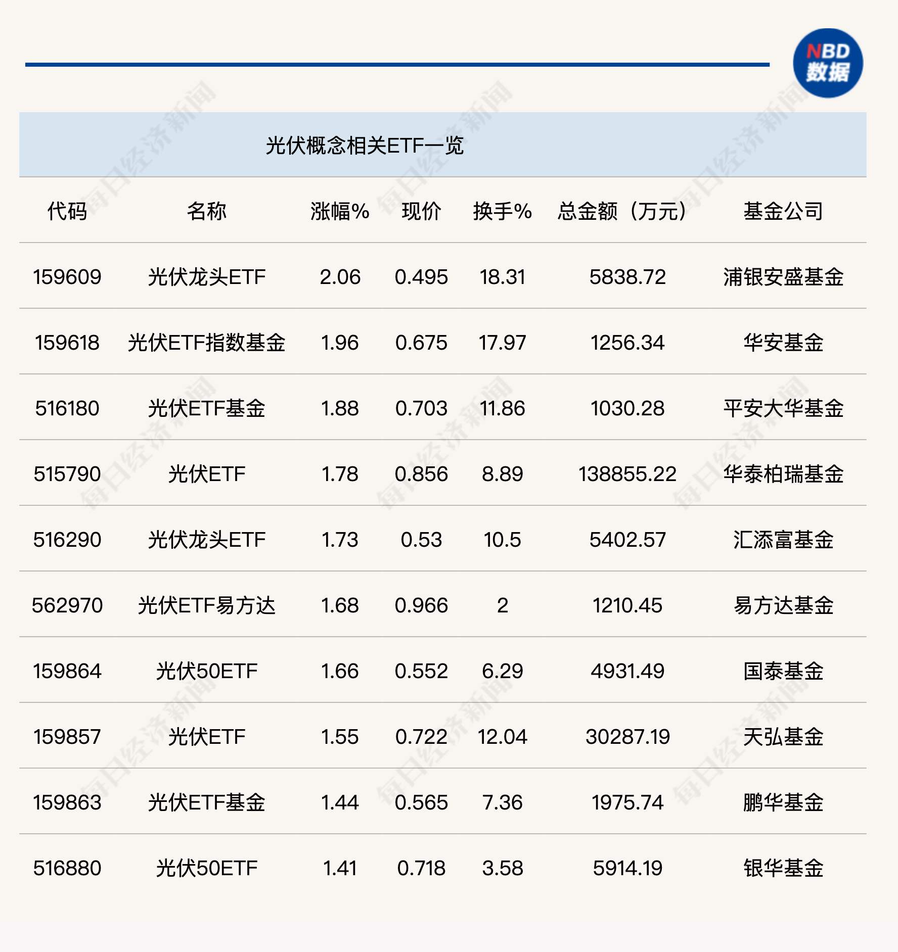 ETF市场涨幅榜上,光伏相关ETF今日上午表现亮眼。其中,光伏龙头ETF(159609)半日涨幅超过2%,光伏ETF(515790)半日成交金额更是高达13.89亿元。