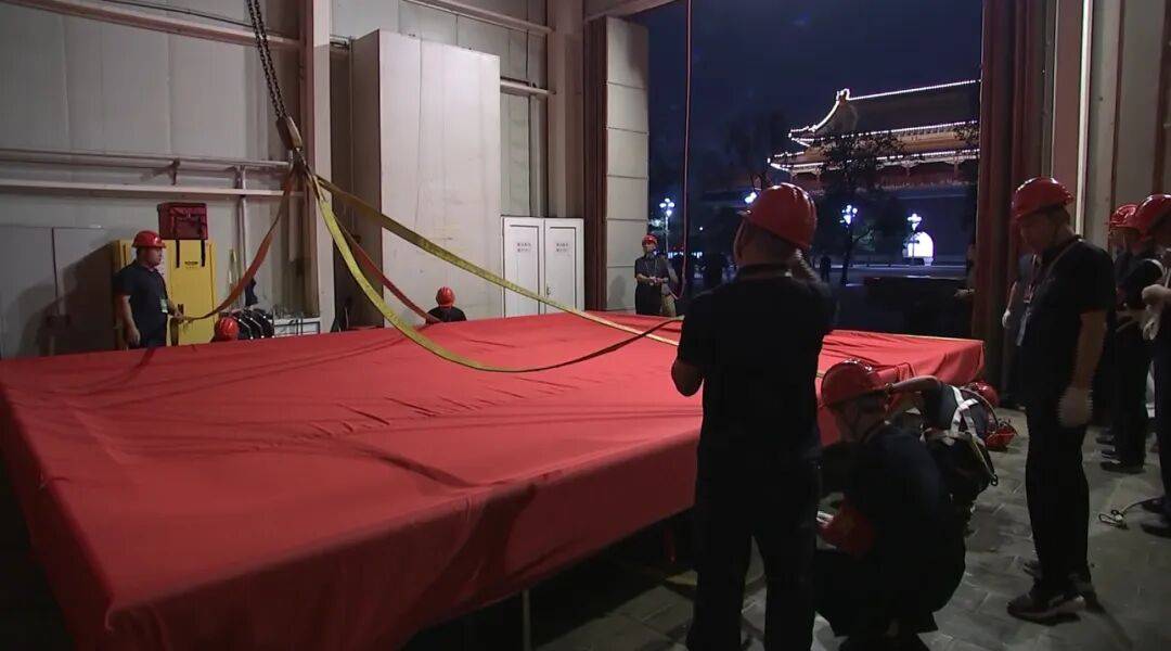 8月19日23时,运载着崭新画像的货车从端门开出,历时两个多小时,旧画像被缓缓摘下,新画像稳稳地吊装在粉刷一新的天安门城楼中央。