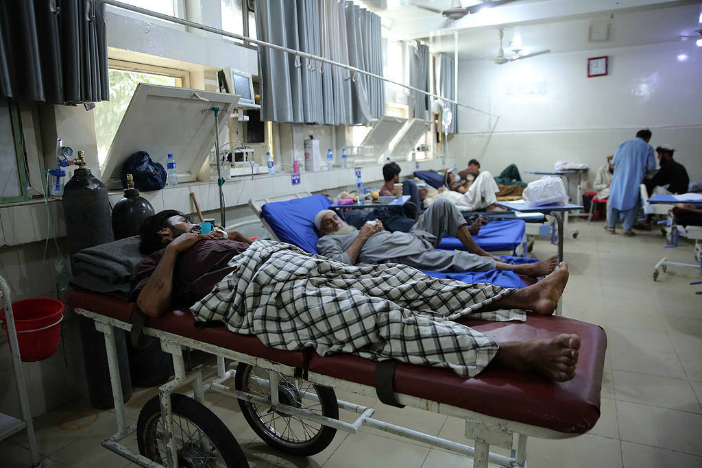 当地时间2025年9月3日,阿富汗贾拉拉巴德,地震灾民在医院接受治疗。视觉中国 图