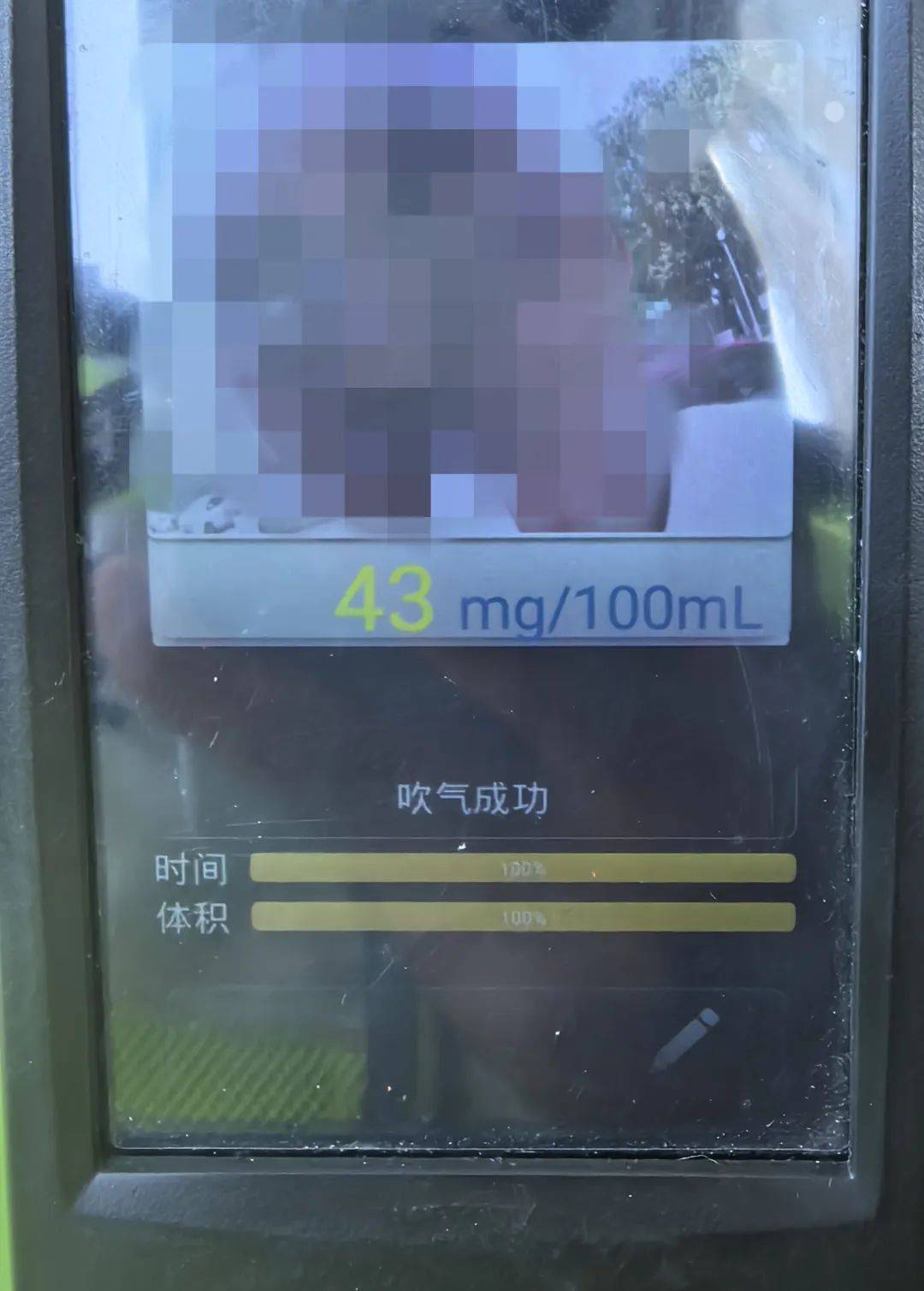 驾驶人田某酒精含量测试结果为