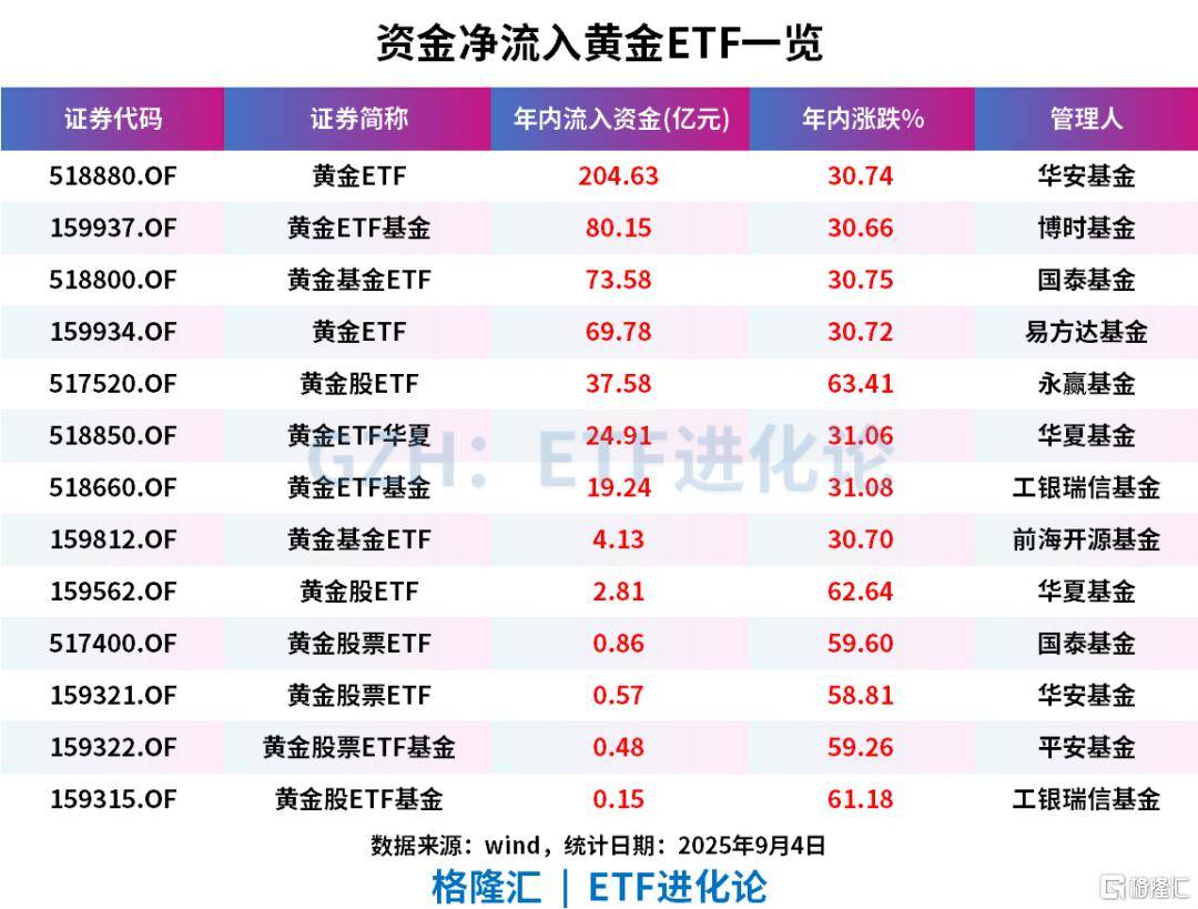 从A股ETF市场看,年内黄金ETF资金净流入额达518亿元。