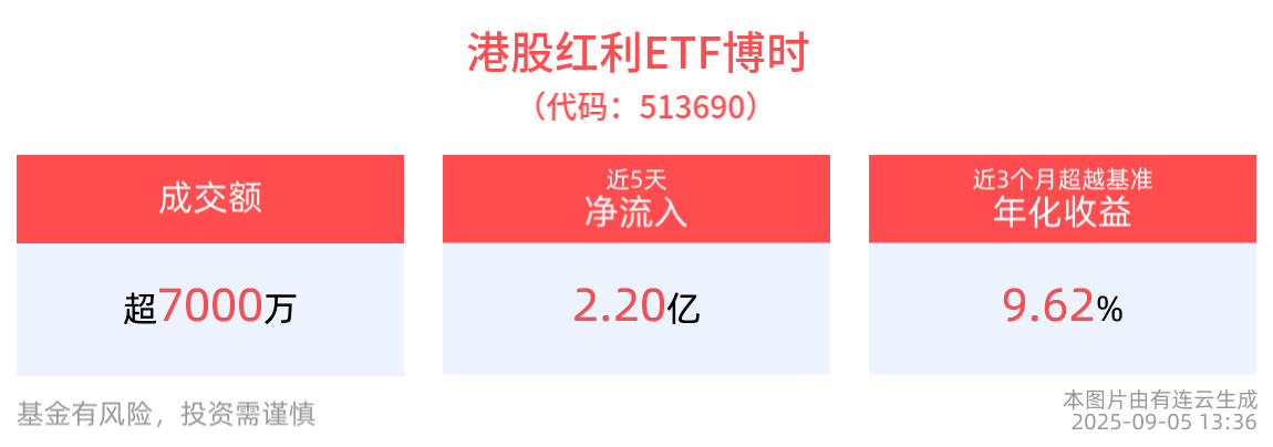 流动性方面,港股红利ETF博时盘中换手1.63%,成交7984.61万元。拉长时间看,截至9月4日,港股红利ETF博时近1月日均成交2.19亿元。