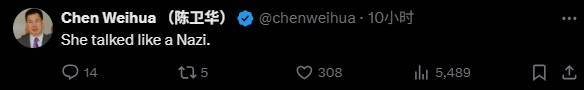 中国日报社欧盟分社社长陈卫华连发多文抨击卡拉斯:她像纳粹一样发言;4.5亿欧盟公民应该为她在全球舞台上代表他们而感到羞耻;她应该被送回小学去学习历史……