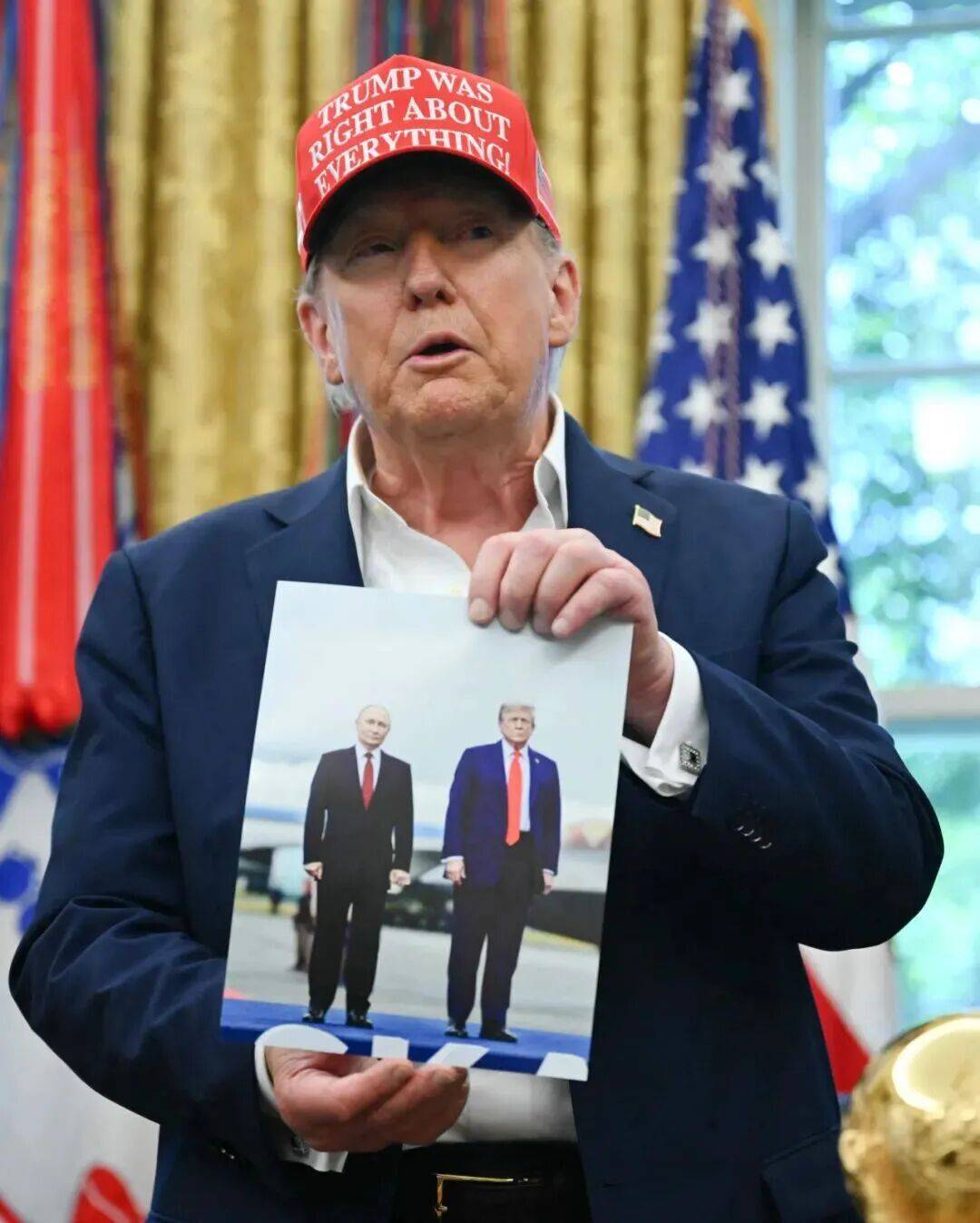 ▲资料图片:特朗普展示他与普京合影(法新社)