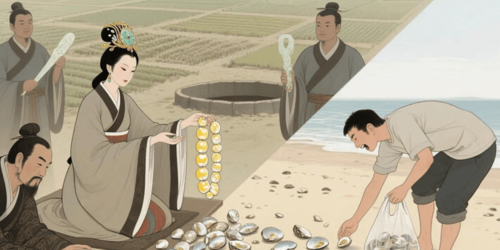 法律的限制更让“私采贝壳”成为禁忌。《周礼·天官》明确记载:“贝币者,王家所铸也。”西周设立“司货”官职,专门负责贝壳的开采、加工和发行。湖北云梦睡虎地秦简显示,秦朝对私采货币原料者处以“黥为城旦”的刑罚——在脸上刺字后罚做四年苦役。这种严苛的法律,让古人即便知道海边有贝壳,也不敢轻易染指。