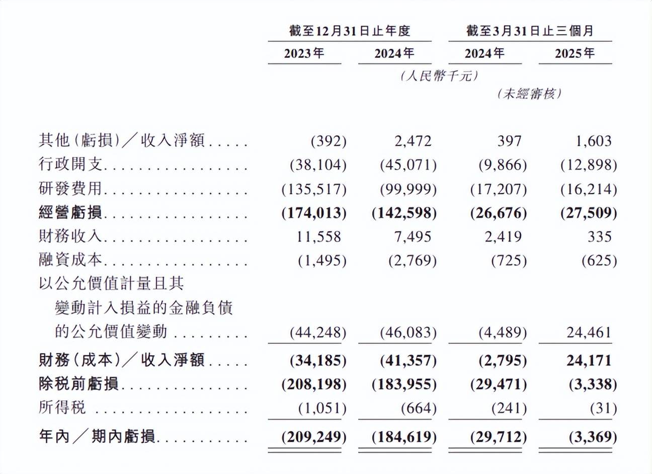 招股书显示,2023年、2024年和2025年一季度,应世生物的其他/收入净额分别约为-39.2万元、247.2万元、160.3万元;期内亏损分别约为-2.09亿元、-1.85亿元、-336.9万元。