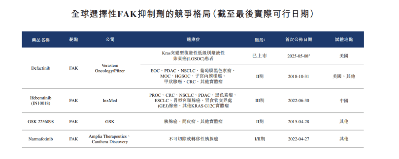 基于产品自身在耐药性、治疗窗方面的攻关,以及癌症患者规模庞大,Ifebemtinib有不小的应用潜力。另外,从市场竞争格局来看,应世生物称全球仅有一款选择性FAK抑制剂获FDA批准,还有三款其他在研选择性FAK抑制剂处于临床开发阶段,ifebemtinib处于领先地位。