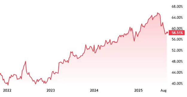 近年来,资金流向的分化愈发明显。比特币市值占比( Dominance )从 2023 年初的约 40% 一路攀升,在 2024 年多次突破 55% 的高点,成为市场流动性的绝对主导。与此同时,美国现货比特币 ETF 自 2024 年 1 月获批以来,吸引了超过 1000 亿美元 的资产管理规模( AUM ),净流入资金超过 307 亿美元。