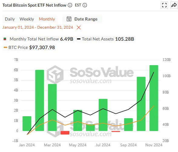 图:Total net inflow of Bitcoin spot ETFs in 2024