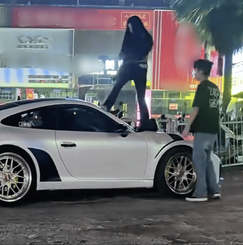 相关视频显示,贵阳街头一女子与男子在保时捷旁发生争执,随后女子将包摔向前挡风玻璃后,跳上引擎盖,用脚连续踹车前挡风玻璃,造成挡风玻璃大面积损坏,车内疑似还坐着另一名女子。