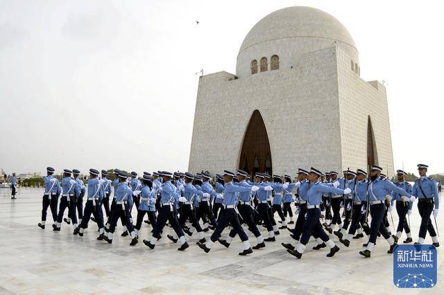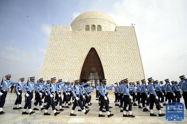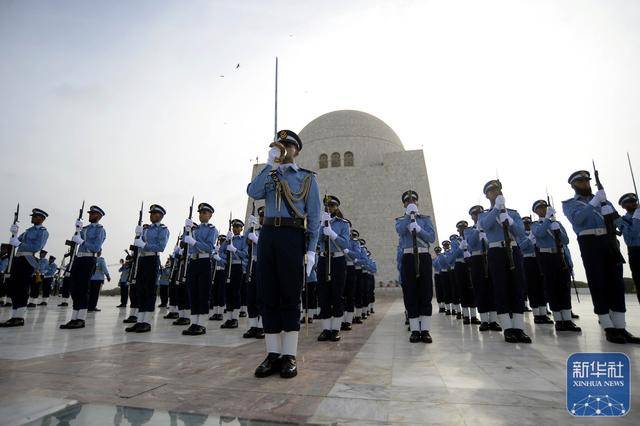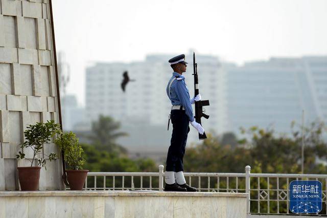 ↑9月6日,在巴基斯坦南部城市卡拉奇,巴基斯坦军人在国父真纳墓参加国防日庆祝活动。
