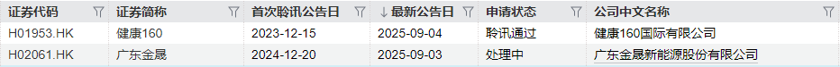 上周,广东金晟新能源股份有限公司更新了港股招股书,健康160国际有限公司的聆讯通过。