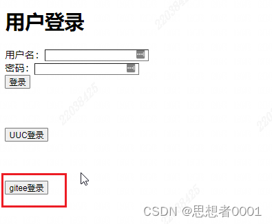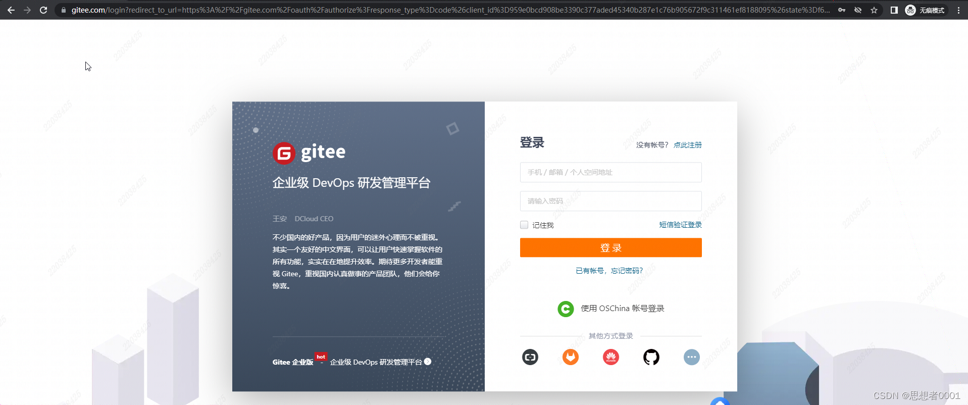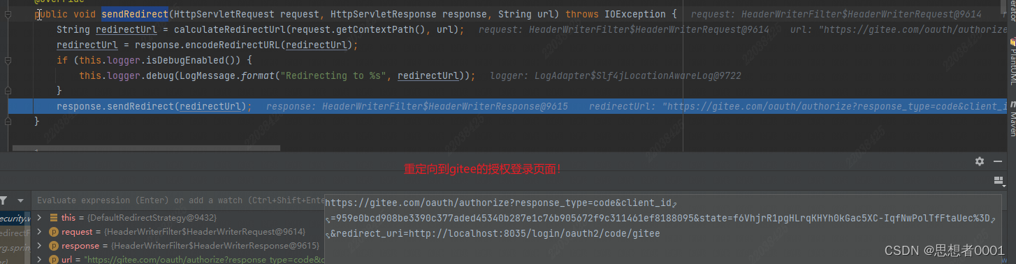 debug放行,后续Filter不被执行,页面渲染授权登录页面(如果浏览器已登录过gitee将不会出现以下页面,而是直接进行回调,因为已登录啦):