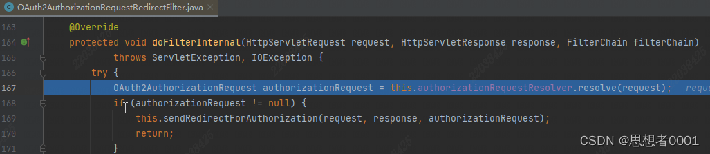 debug放行直到进入OAuth2AuthorizationRequestFilter: