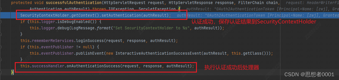 这里会将OAuth2AuthenticationToken保存到SecurityContextHolder中,以使得SecurityContextPersistenceFilter能持久化到会话中,