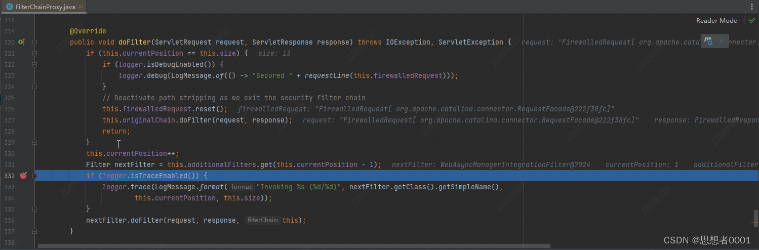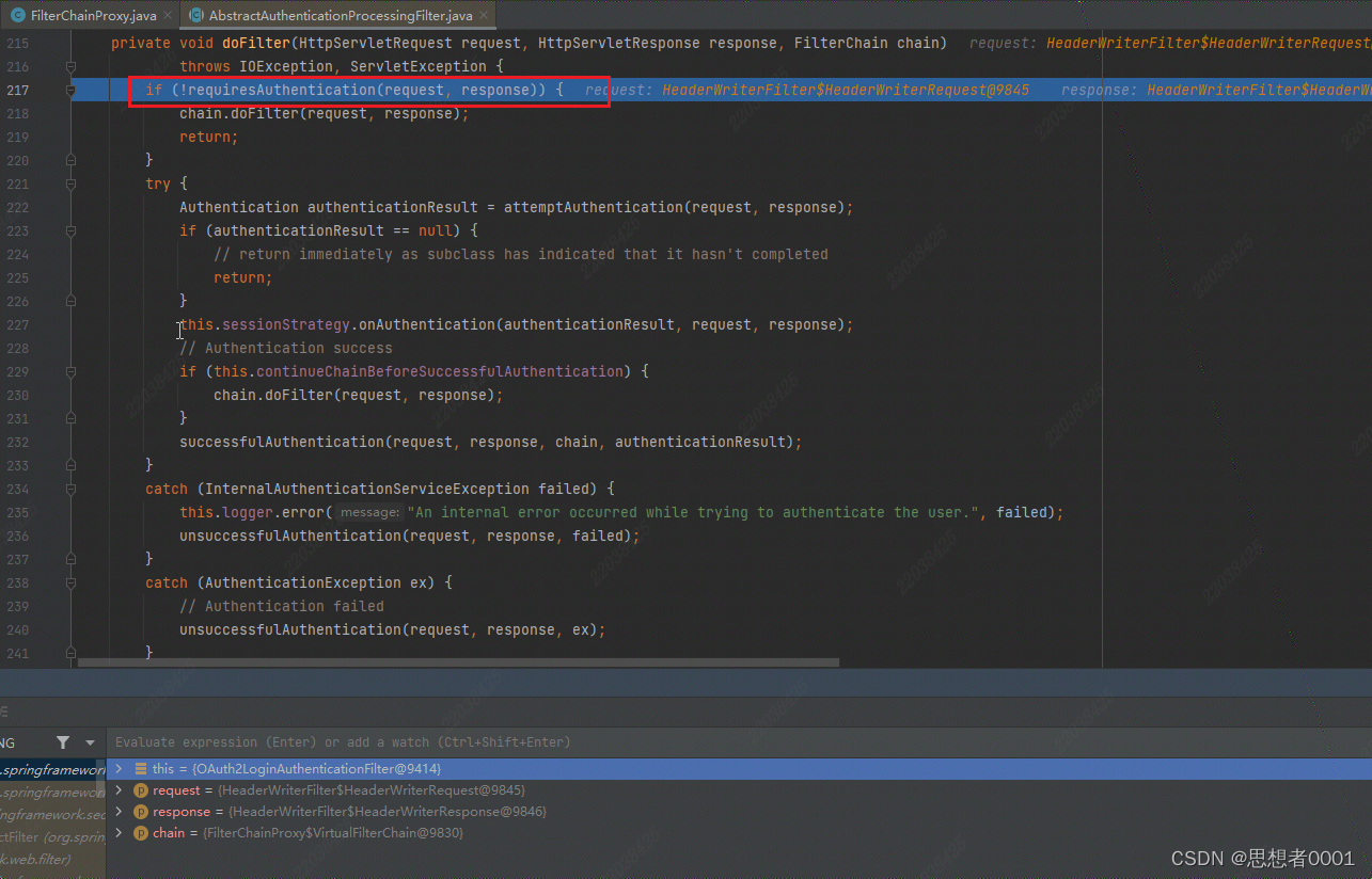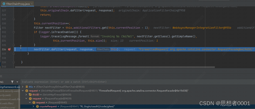 保持FilterChainProxy断点,gitee登录和确认授权后,进入该断点: