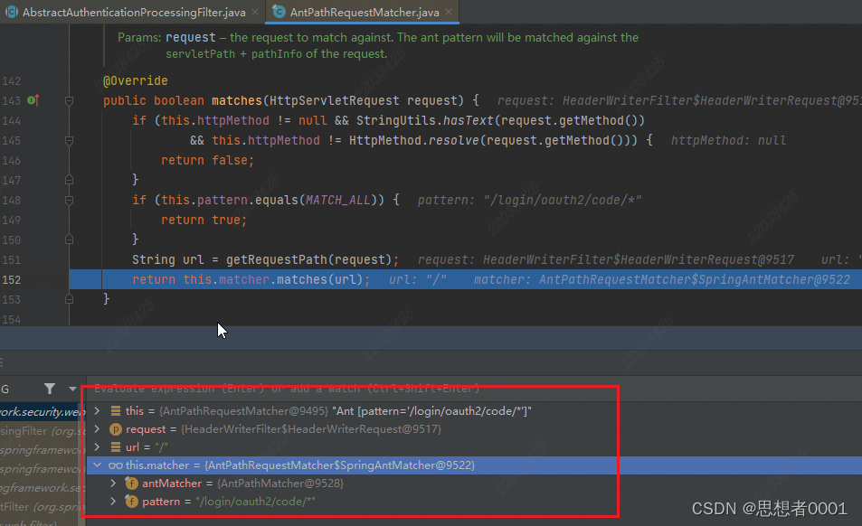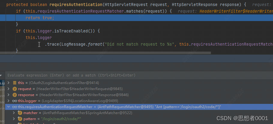 pattern是/login/oauth2/code/*,当前回调请求的url是/login/oauth2/code/gitee,因此匹配,开始执行认证: