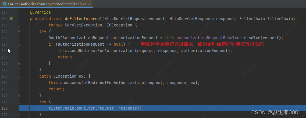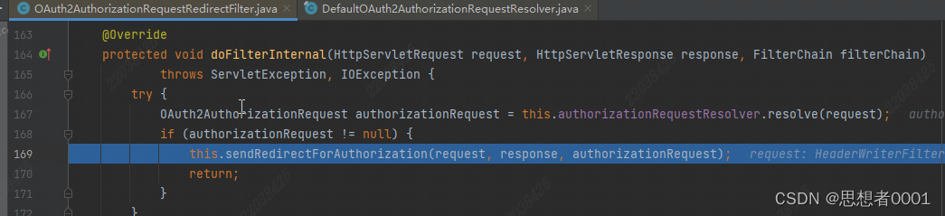 debug放行,直到进入OAuth2AuthorizationRequestRedirectFilter :