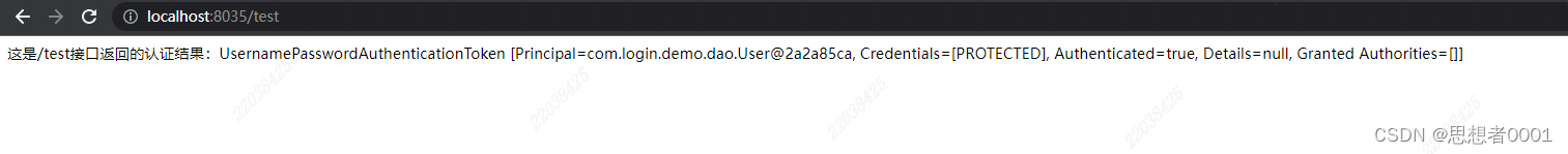 重启浏览器,访问localhost:8035/test,跳转登录页,使用gitee授权登录后,页面会重定向到localhost:8035/test
