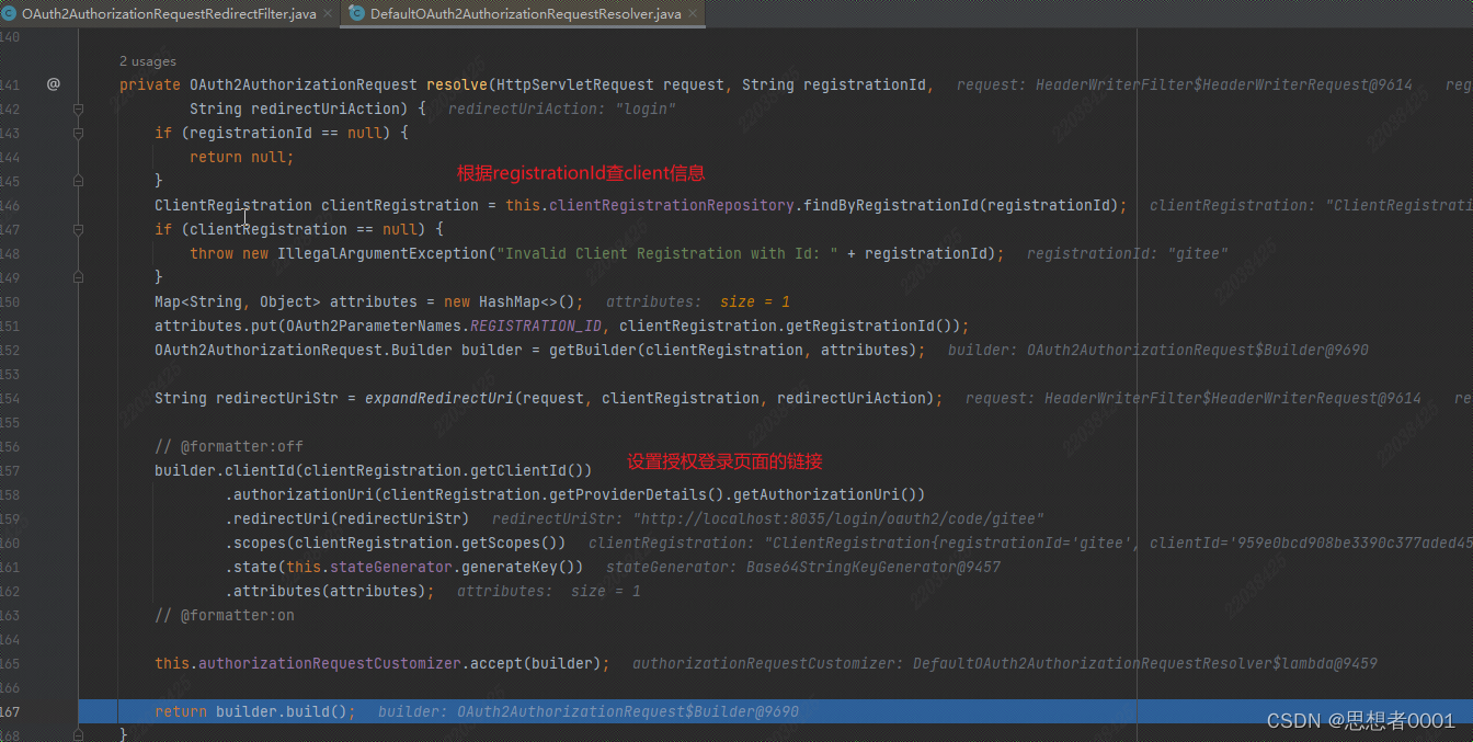 pattern是/oauth2/authorization/{registrationId},因此可解析出registrationId是gitee